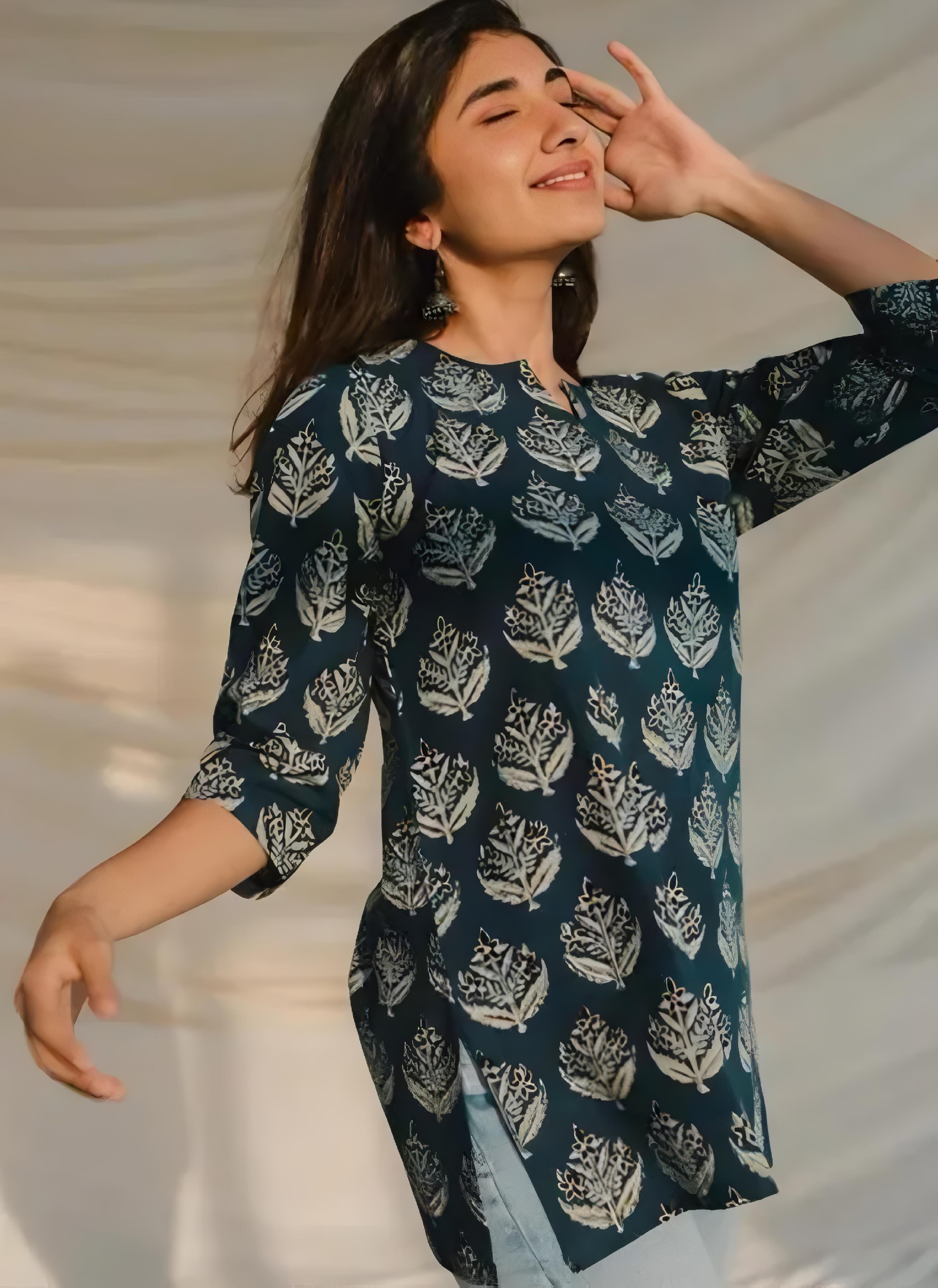 Fabric: Crepe Sleeve Length: Three-Quarter Sleeves Pattern: Chikankari Combo of: Single